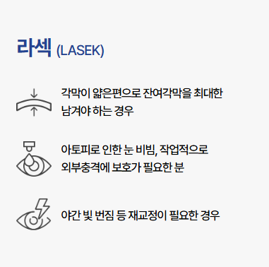 각막이 얇거나 특성이 있는 경우에도 고려되는 안전한 수술법입니다.