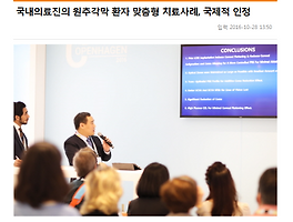 CXL (26) 썸네일형 리스트형 라섹수술 후 콜라겐교차결합술_유럽안과지 9월호 강성용 원장 칼럼 유럽 안과 전문지 The Ophthalmologist 9월호에 아이리움안과 강성용 원장의 칼럼이 실렸습니다. 이번 호의 주제는 원추각막(Keratoconus)입니다. 원추각막과 관련 전 세계 전문가들로부터 원추각막의 최근 진단방법과 수술, 치료방법을 주제로 한 칼럼들을 확인할 수 있습니다. https://theophthalmologist.com/issues/0919 라식라섹 수술 후 각막의 생체역학적 안정성을 보완하기 위해 콜라겐교차결합술(CXL,크로스링킹)을 병행하고 있으며 올레이저 라섹 후 콜라겐교차결합술을 하면 라섹수술을 단독으로 할때보다 시력퇴행을 억제할 수 있다는 사실을 최근 과학적으로 입증했고 시력교정 결과도 더 좋았다고 전했습니다. 이 수술이 바로 엑스트라 수술입니다. 1차적으로 시력교정수술.. 엑스트라라섹/각막콜라겐교차결합술 초청강연(상해) 지난 6일, 아이리움안과 강성용 원장이 중국 상하이 굴절교정심포지엄에 연사로 초청되어 주제로 강연을 진행했습니다. 강성용 원장은 아시아 유일의 아베드로 의학자문위원회에 소속되어 있어, 자문위원 자격으로 초청되었습니다. 이번 중국 상하이굴절교정심포지엄엔 강성용 원장을 포함해, 유럽에서 처음 스마일라식을 시행한 세계적 권위자인 영국의 Walter Sekundo 교수, 싱가포르 국립안과학회의 Lim Li 교수, 단 3명만이 초청연자로 참석했습니다. Walter Sekundo(좌)와 강성용 원장(우) 이번 학회는 중국에 처음으로 KXL시스템으로 CXL을 시행한 푸단대학교의 쩌우씽타오 교수가 진행을 맡았습니다. 강성용 원장의 강연을 듣기 위해 이날 500명의 중국의사가 한 자리에 모였는데요. BMC, JCRS 등.. 엑스트라스마일/엑스트라라섹-스마일라식,라섹 안전하게 스마일라식,라섹수술 후 약해질 수 있은 각막을 수술 전 수준으로 각막을 재강화하는 엑스트라(Xtra)수술에 대한 관심이 높습니다. 많은 분들이 이미 아시다시피, 아이리움안과는 국내에 처음 엑스트라라식을 도입하고, 미국 아베드로 본사에 아시아 유일 의학자문위원(MAB) 및 5개국 엠버서더로서 엑스트라수술의 안전기준을 확립하고 있습니다. 또한 미국 아베드로 KXL시스템과 VibeX용제 정품을 처음 국내에 도입하여 엑스트라수술을 투명하게 시행하고 있습니다. ▼콜라겐교차결합술/엑스트라 분야 AVEDRO社 아시아유일 의학자문위원 강성용 원장 -아베드로 라식엑스트라 홈페이지(http://www.lasikxtra.com/)에서 레이저 수술 후 콜라겐교차결합술을 함으로써 교정후 각막구조의 안정화와 수술 후 시력을 꽉 .. 라식라섹 후 시력저하 재교정 사례 라식라섹 후 시력저하로 불안한 적 있으신가요? 시력저하를 느낀다면 다시 안경을 써야 하는 것보다 무서운 부작용의 신호일 수 있습니다. 시력저하를 야기하는 부작용 원인도 여러가지이고 치료방법도 상이하기에, 다양한 부작용 치료사례를 가지고 있는 병원에서 면밀히 상담 후 재교정 등 적절한 치료를 받아야 합니다. 수술하고 시력이 바로 안나오는 경우 -시력검사의 오류, 시력검사와 수술 전 교정시력을 계산하는 노모그램간의 오차, 다른 여러 이유로 과교정 또는 저교정이 발생할 수 있습니다. -장비가 노후한 경우나 열악한 수술실 환경, 수술 후 안약사용이 잘 안된 경우, 정기검진 누락으로 중요한 부작용 징후를 놓친 경우에도 시력저하가 발생할 수 있습니다. 레이저 수술장비가 중요한 이유 과거 아마리스레드1050RS 장비.. 중등도 이상의 원추각막에서 각막내 링삽입술과 각막지형절삭술 (2016아시아각막학회) 세계 각막 전문가 1000여명이 참가한 아시아각막학회(ACS 2016)가 지난 9일부터 11일까지 서울에서 개최되었습니다. 아시아각막학회 학술대회(Asia Cornea Society, ACS)는 2008년 싱가폴에서 처음 열린 학회로 2년마다 개최되고 있으며 아시아권 안과 전문의들 중 각막 질환 분야 전문가들이 참석하는 권위있는 학회입니다. 아이리움안과 강성용 원장은 김태임 교수 등 연세대 의과대 의료진과 함께 아래와 같은 주제를 발표했습니다. ■원추각막 3중치료법 -콜라겐교차결합술, 링삽입술, 각막지형절삭술 '코웨이브'- Management of Keratoconus: UV Crosslinking, Ring Segment Implantation and Corneal Ablation ■연령에 따른각막의 .. 강성용원장,라식라섹엑스트라 권위자로 초청강연(국제콜라겐교차결합술학회) 원추각막 등 시력교정술 부작용의 예방과 치료를 위해 국제 의학자문위원으로 활발한 활동을 하고 있는 아이리움안과 강성용 원장이 지난 2일부터 3일까지 스위스 취리히에서 개최된 ‘국제 각막콜라겐교차결합술학회(International CXL Expert Meeting)에서 초청강연을 진행하고 돌아왔습니다. 이번 학회에는 강 원장과 세계적 SCI급 학술지 Journal of Refractive Surgery에 각막강성도 논문을 함께 발표한 Paolo Vinciguerra, MD(이탈리아), Renato Ambrosio, MD, PhD(브라질) 등 세계적 안과 석학들이 모였다. 강성용 원장은 총 2회에 걸쳐 연자로 참석해 강연을 진행하였습니다. 강성용 원장은 앞서 언급한 세계석학들과 전세계 4개 대륙에서 연구한 .. 아이리움안과, 원추각막 환자 맞춤형 치료사례로 국제적 인정 강남 아이리움안과 강성용 대표원장이 유럽